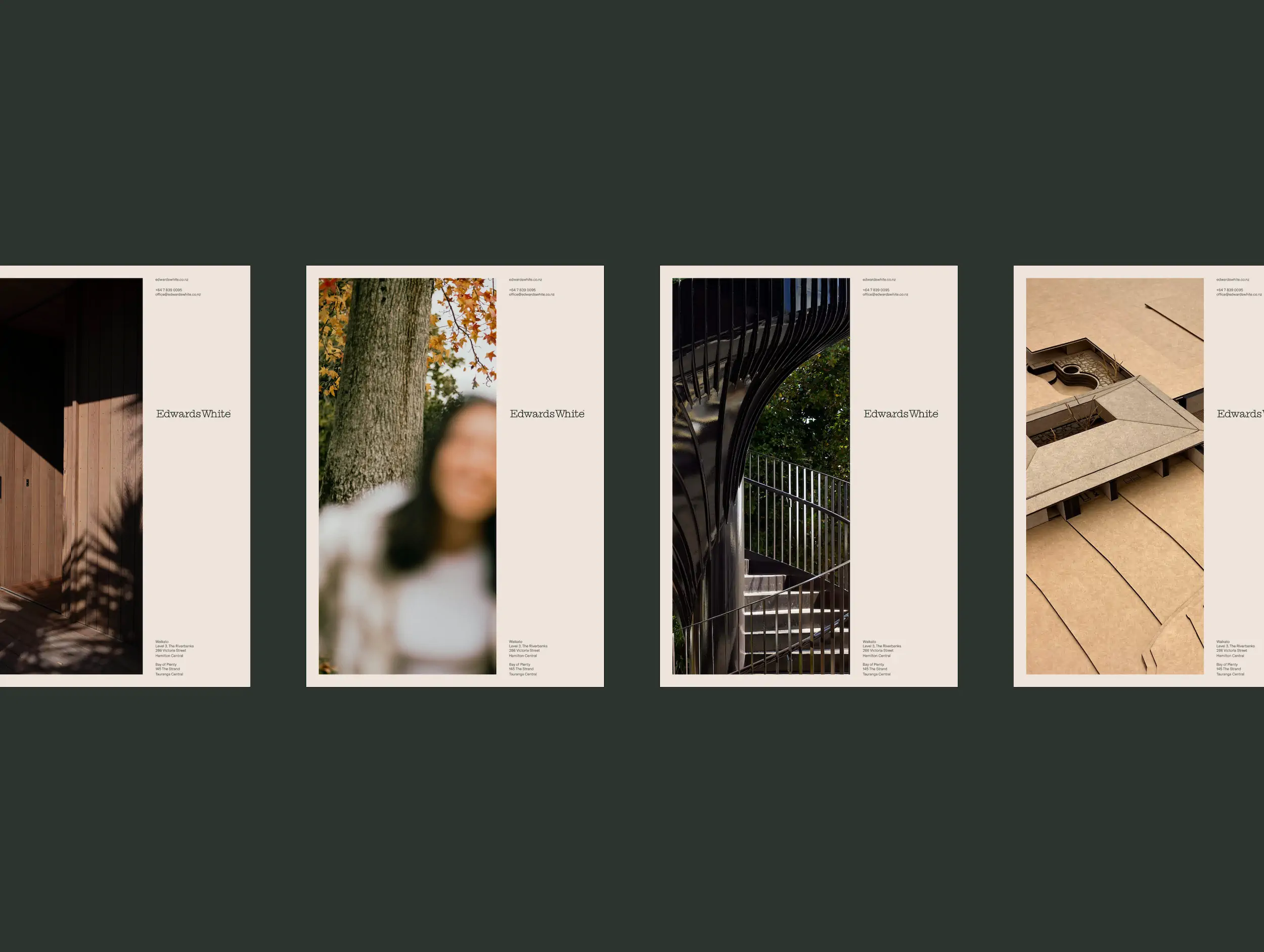 Edwards White Architects engaged us to develop a brand identity that better reflected the way they think, design and work. Their practice is grounded in context, collaboration and careful execution, but this depth was not consistently expressed across their existing identity or digital presence. The project called for a clear brand foundation and a system that could scale across all touchpoints, with the website identified early on as one of the most important expressions of the new identity. The core idea underpinning the work was “People places”. This reflects a belief in architecture as more than the admiration of finished objects, focusing instead on how thoughtful design enriches everyday human experience. Our task was to translate this idea into a coherent identity and a digital platform that could communicate both the work and the thinking behind it.