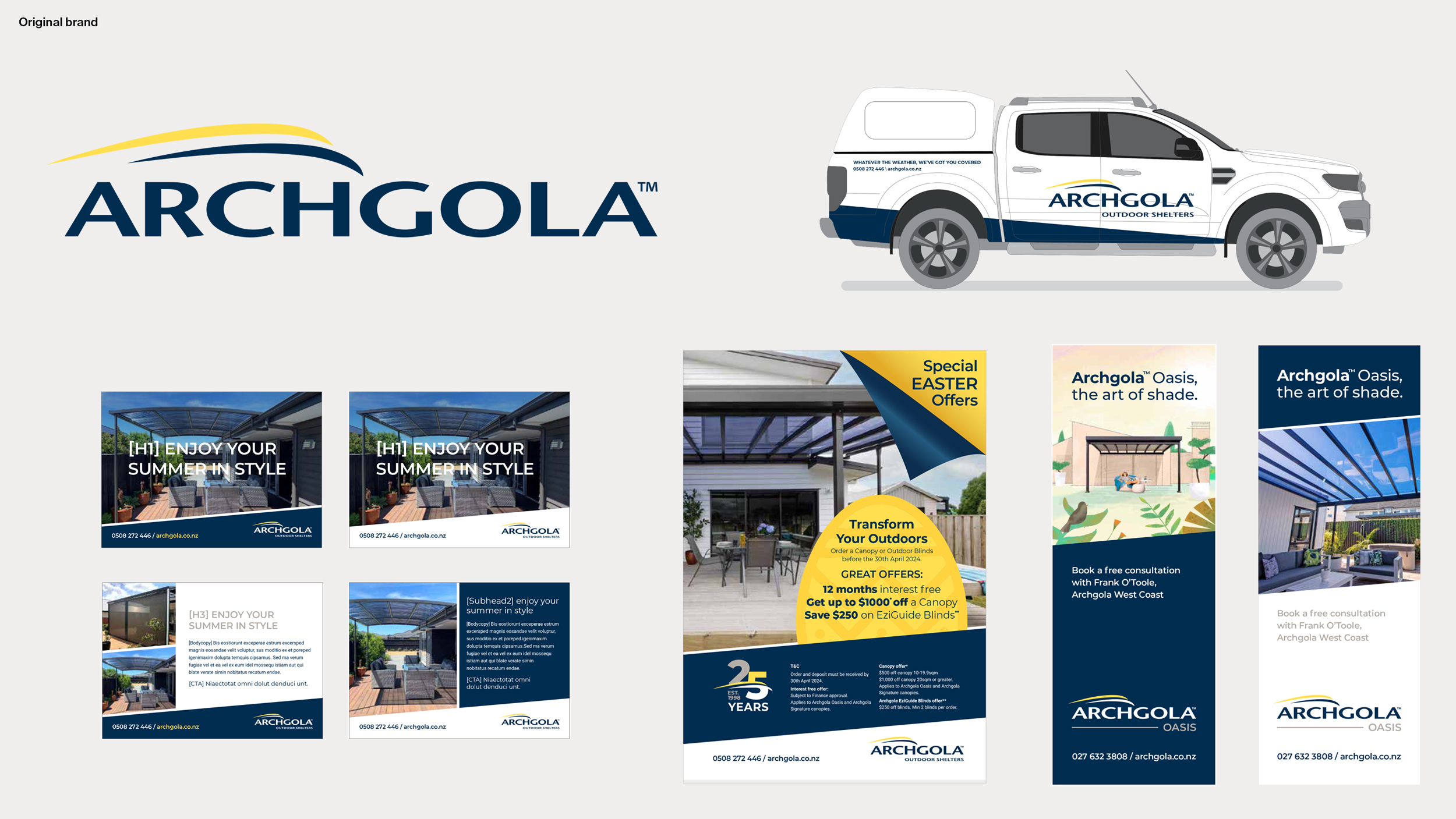 The entire system - from the sharp logo on the delivery van to the clear messaging in the ads - ensures Archgola is showing up consistently and confidently across all platforms. This rebrand is about making Archgola the clear choice for anyone wanting a functional, stylish extension of their home, transforming the outdoors into a space people love to use. By connecting emotionally and leveraging their history of trust, Archgola is set up to remain the market leader and thrive with the next generation of Kiwi customers.